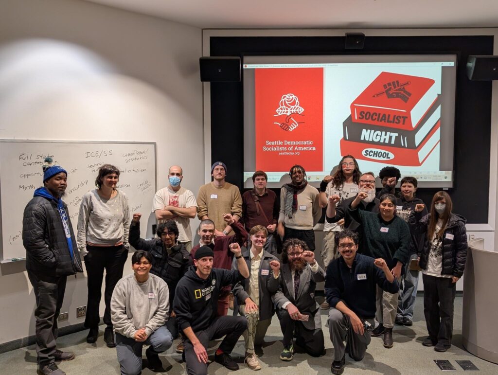 The Socialist Night School has partnered with YDSA and No Azure for Apartheid and is hoping to partner with additional SDSA working groups and community organizations. They’re also planning to re-establish the Political Education Committee within SDSA in 2026.
